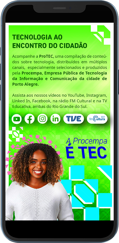 Desenvolvido como um projeto social, nascido no setor de comunicação por meio de ferramentas de design thinking presentes em framework adaptado pro mim, chamado D.I.A.S, o ProTec é um projeto multimídia de educação em tecnologia para toda a população de Porto Alegre.