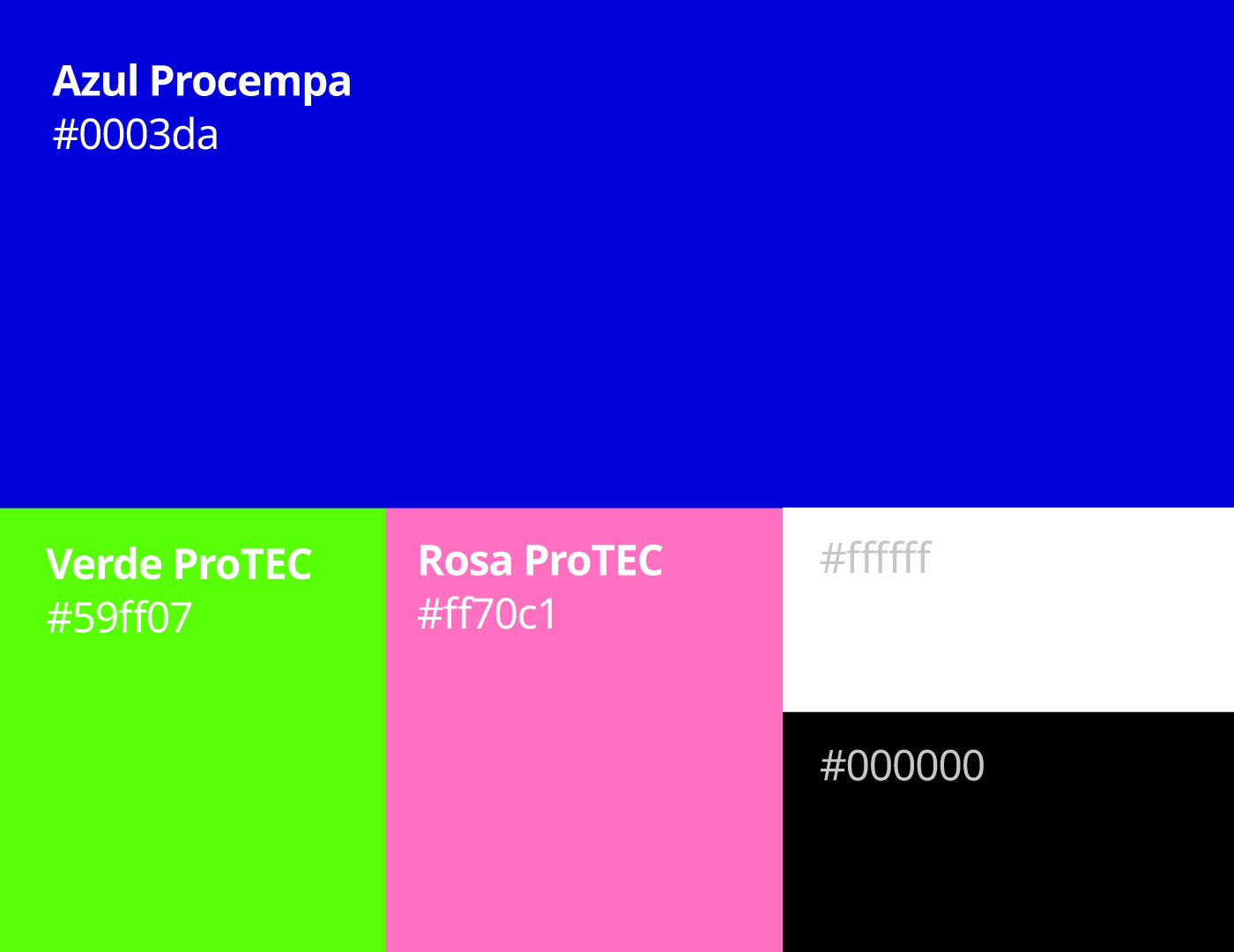 Além disso, os recursos de fontes e cores se ancoram na identidade visual já estabelecida da Procempa, mas com a ousadia de trazer cores mais vibrantes e dar destaque para a fonte DIN, atualmente, fonte secundária na identidade principal